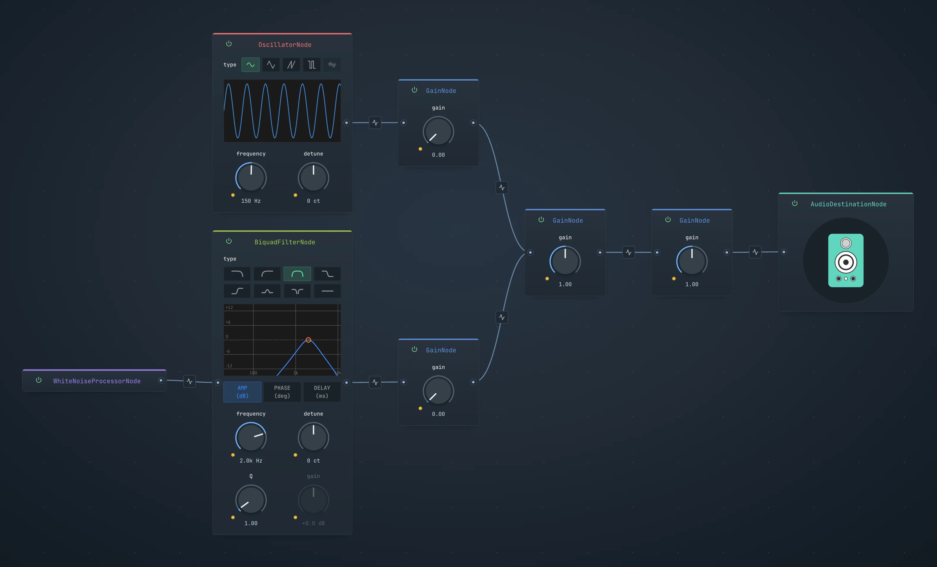 Open the live graph in Web Audio Studio → and hear it before reading the code.
