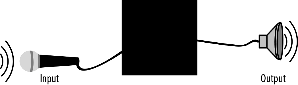 Неважно, анализируем мы звук или синтезируем его, всё самое интересное для программистов аудио происходит внутри «чёрного ящика» (см. Рисунок 1-7), отвечающего за обработку аудиосигнала. Раньше этот процесс осуществлялся с помощью аналоговых фильтров и другого оборудования, которое по современным меркам выглядит устаревшим. Сегодня существуют цифровые реализации большинства этих старых аналоговых устройств. Но прежде чем мы сможем приступить к программной реализации этих интересных задач, нам нужно представить звук в той форме, с которой могут работать компьютеры.