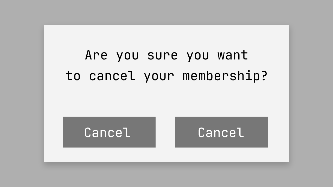Такие способы удержания клиента называются тёмными паттернами — приёмами в UX-дизайне, которые используют когнитивные искажения, невнимательность, усталость или особенности восприятия, чтобы склонить пользователя к нужному для бизнеса действию.