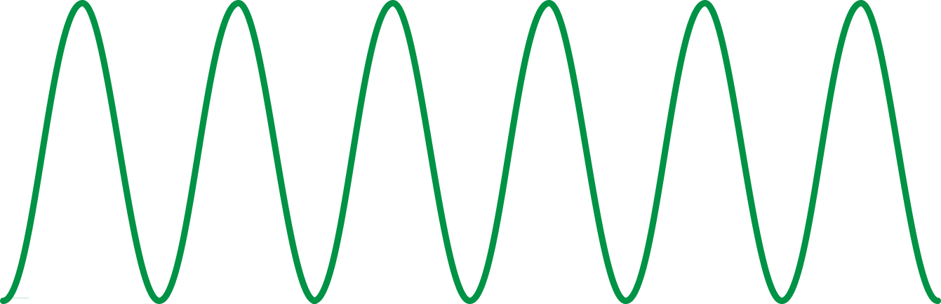 Математически, звук может быть представлен функцией, отображающей изменение давления в зависимости от времени. На Рисунке 1-6 показан график такой функции. Области с большими значениями на графике соответствуют областям с частицами, расположенными более плотно на Рисунке 1-5 (области высокого давления), а с меньшими значениями — областям с редко расположенными частицами (области низкого давления).